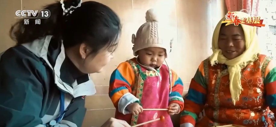 魏秀珍本就是高原上长大的孩子,如今也是一个4岁娃娃的妈妈。她说儿时的留守经历让她更懂早教对这里的意义,而那些被忽视的属于孩子的成长需求,在育婴辅导员的家访路上并不少见。青海省海东市乐都区育婴辅导员李海彦表示,一进门,一个奶奶在做针线活,孩子的右手用纱巾绑着的,纱巾的另一头绑在她们窗户的铁栏杆上,孩子看到她一动不动坐着,也不笑、也不哭、也不害怕。一条纱巾,折射出农村早期养育资源的匮乏与认知的局限。情感陪伴、回应性照护、早期启蒙教育对于这些留守儿童来说似乎遥不可及。