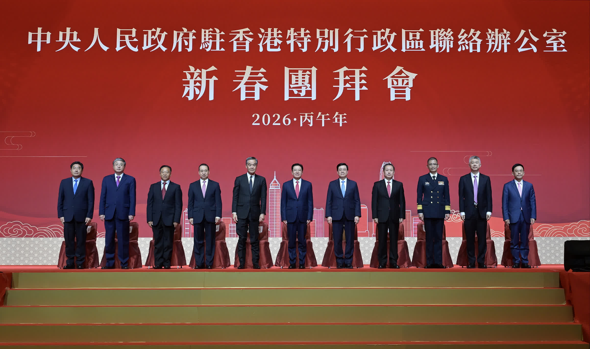 中央政府駐港聯絡辦2026年新春團拜會今日(4日)下午6時在香港會議展覽中心三樓大會堂舉行。行政長官李家超致辭指,香港在邁向由治及興的征程上穩步前行,並就香港在新一年的發展提出四個方向。以下為致辭全文: