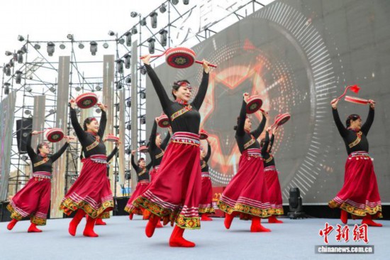 资料图为青海西宁民众表演太极功夫扇。马铭言 摄