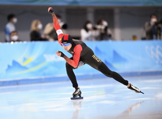2022年2月12日,北京2022年冬奥会速度滑冰男子500米决赛在国家速滑馆“冰丝带”举行,高亭宇夺得冠军。新华社记者 武巍 摄