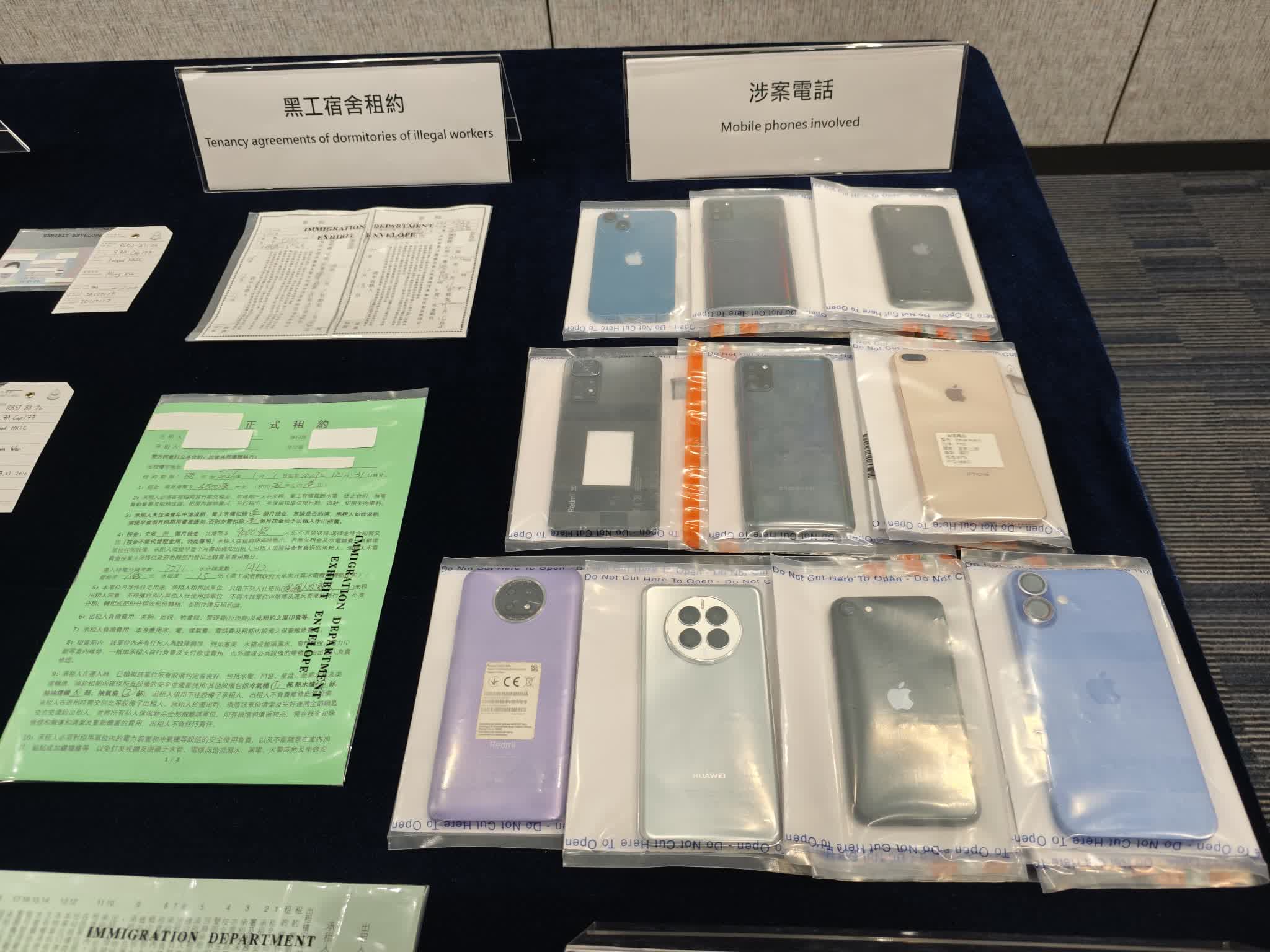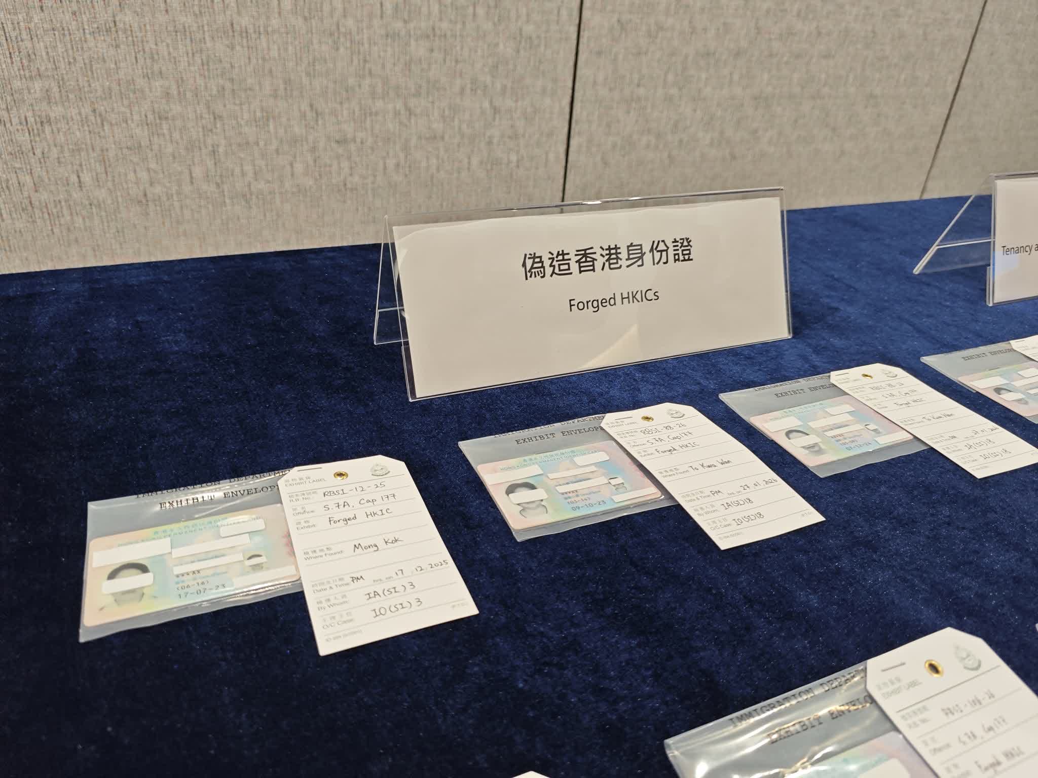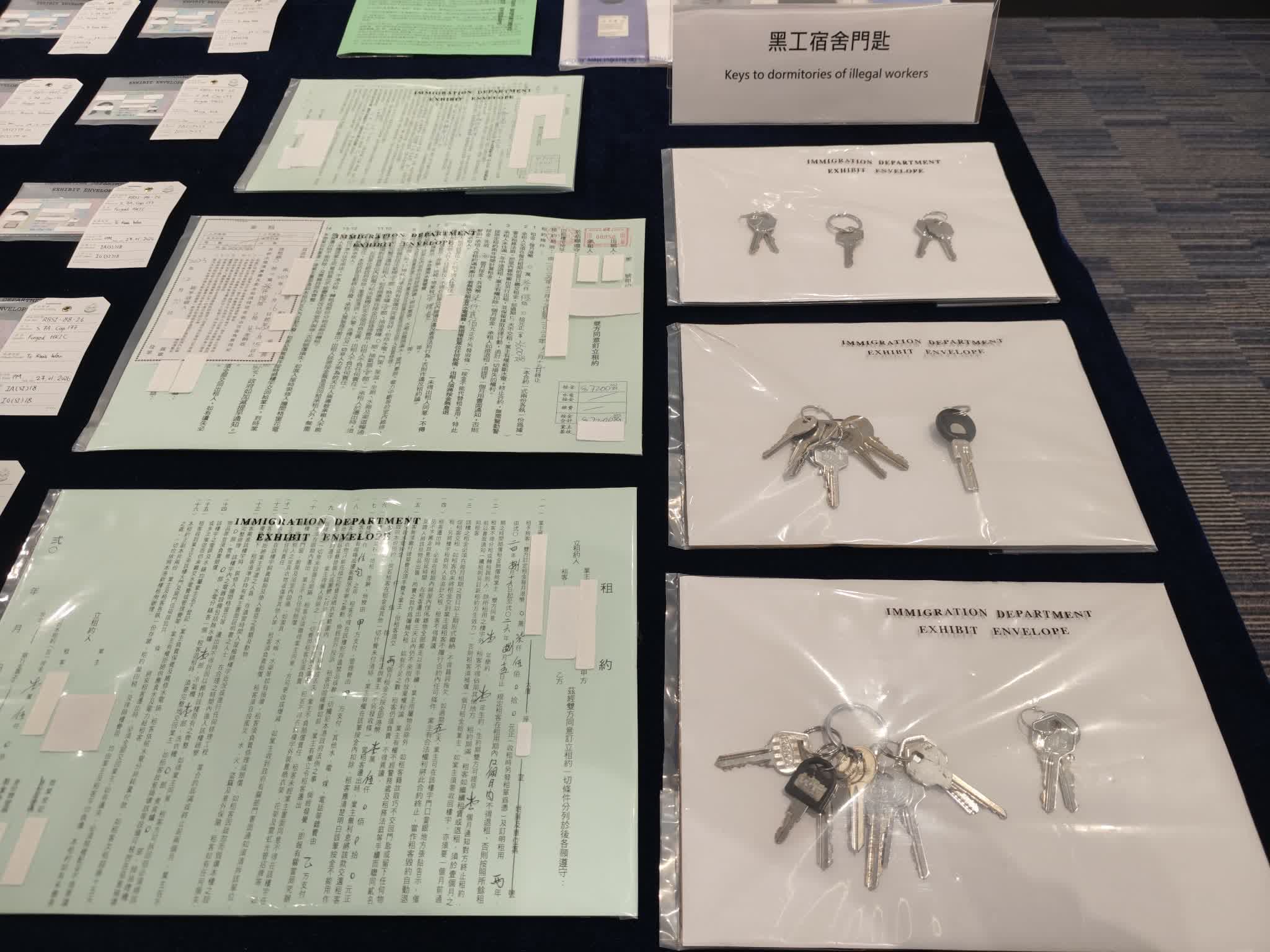 去年11月,經過粵港執法機關緊密的情報互換及分析,入境處調查人員成功鎖定一批懷疑在港非法工作的人士及他們的身份。由於他們流動性極高,經常往返香港及內地,大大增加調查的難度。調查人員對他們的記錄及活動軌跡進行深入分析,成功在短時間內鎖定多個懷疑黑工宿舍及工作地點。調查人員留意到這些黑工宿舍的門外裝有閉路電視,相信用作防範執法人員的巡查。入境處隨即作出嚴密部署,展開收網行動,迅速搗破這些黑工宿舍,並在相關工作地點拘捕多名非法勞工。行動中,執法人員在其中一個由集團主腦操控的黑工宿舍內,檢獲超過20張偽造香港身份證。而這些偽造身份證都收藏在一些十分隱蔽的地方,例如夾在書本內或收藏在奶粉罐內,憑着執法人員的經驗及仔細搜查,順利起出這些被黑工用作見工的偽造身份證。