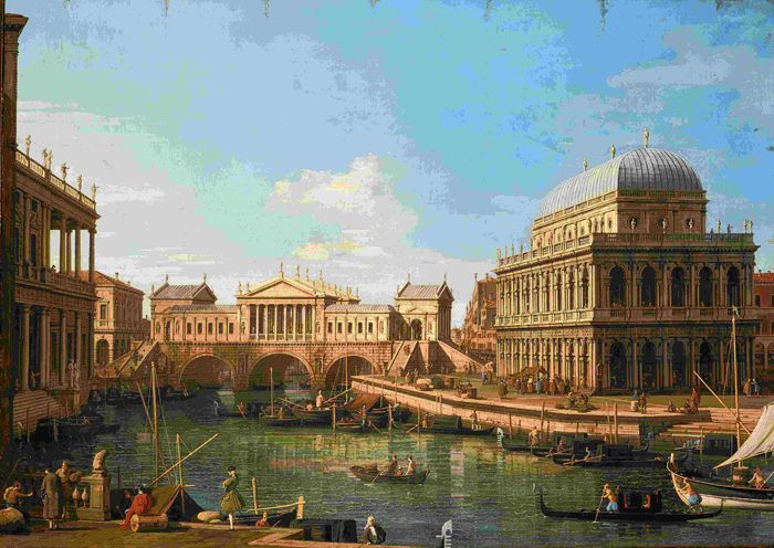 《帕拉第奥建筑随想曲》卡纳莱托 十八世纪中叶 布面油画 现藏于帕尔马国家美术馆(图片提供:国家博物馆)