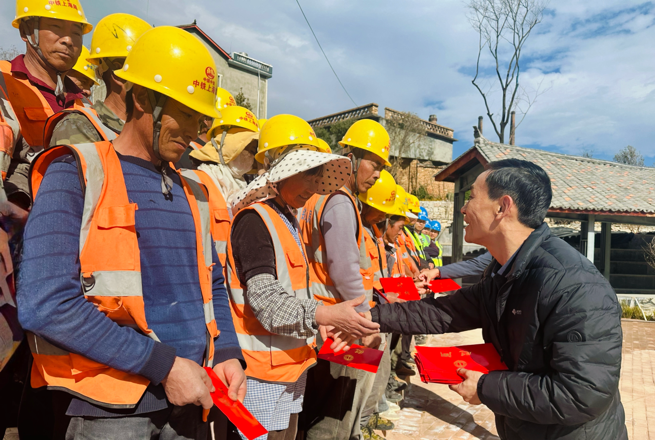 新春佳节临近,年味日益浓厚。2月5日,云南省曲靖市麒麟区总工会深入中铁上海局六公司承建的越州潦浒乡村振兴产融结合示范项目施工现场,走访慰问坚守岗位的一线职民工,为大家送去诚挚问候与新春祝福。区总工会领导一行详细了解了项目当前的施工进展、安全生产、生活保障及春节值守安排等情况,并与工友们亲切交谈,仔细询问大家的食宿条件、工资发放、返乡计划等实际需求。