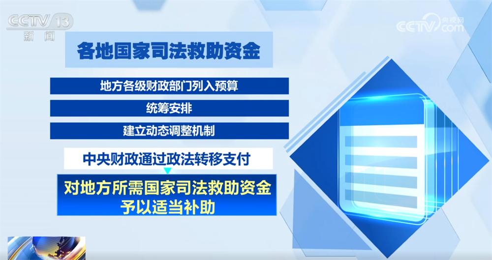 各地国家司法救助资金由地方各级财政部门列入预算,统筹安排,并建立动态调整机制。中央财政通过政法转移支付,对地方所需国家司法救助资金予以适当补助。