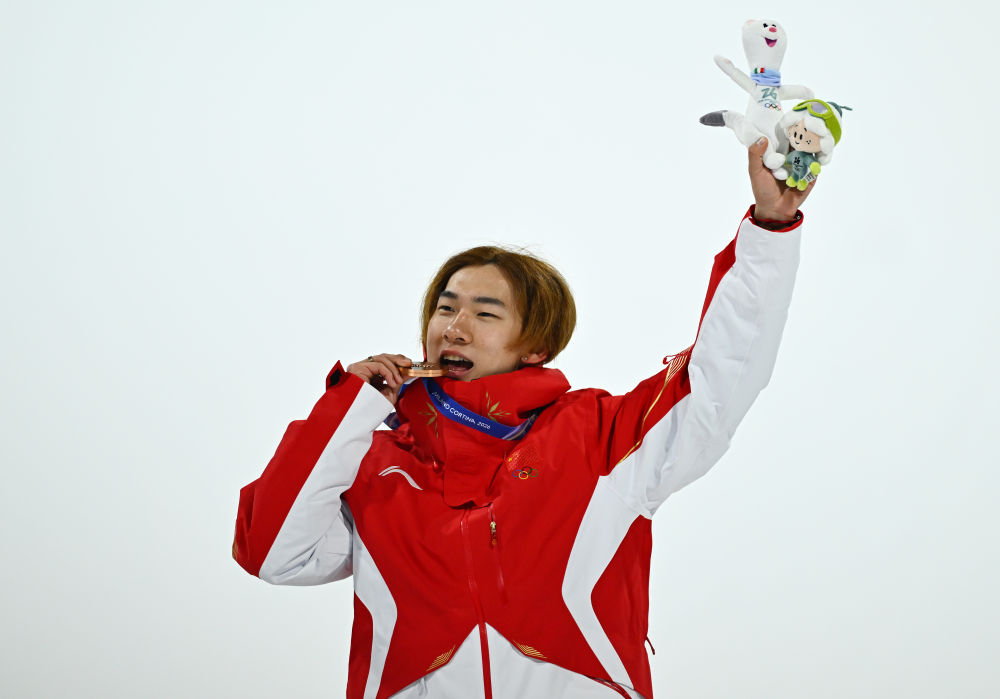 2月7日,季军中国选手苏翊鸣在颁奖仪式上。新华社记者 张宏祥 摄