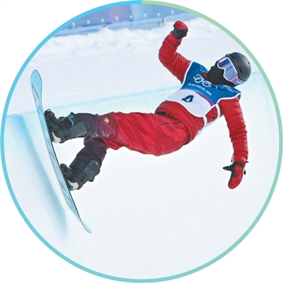 中国队运动员蔡雪桐在单板滑雪女子U型场地技巧资格赛中。本报记者 王 亮摄