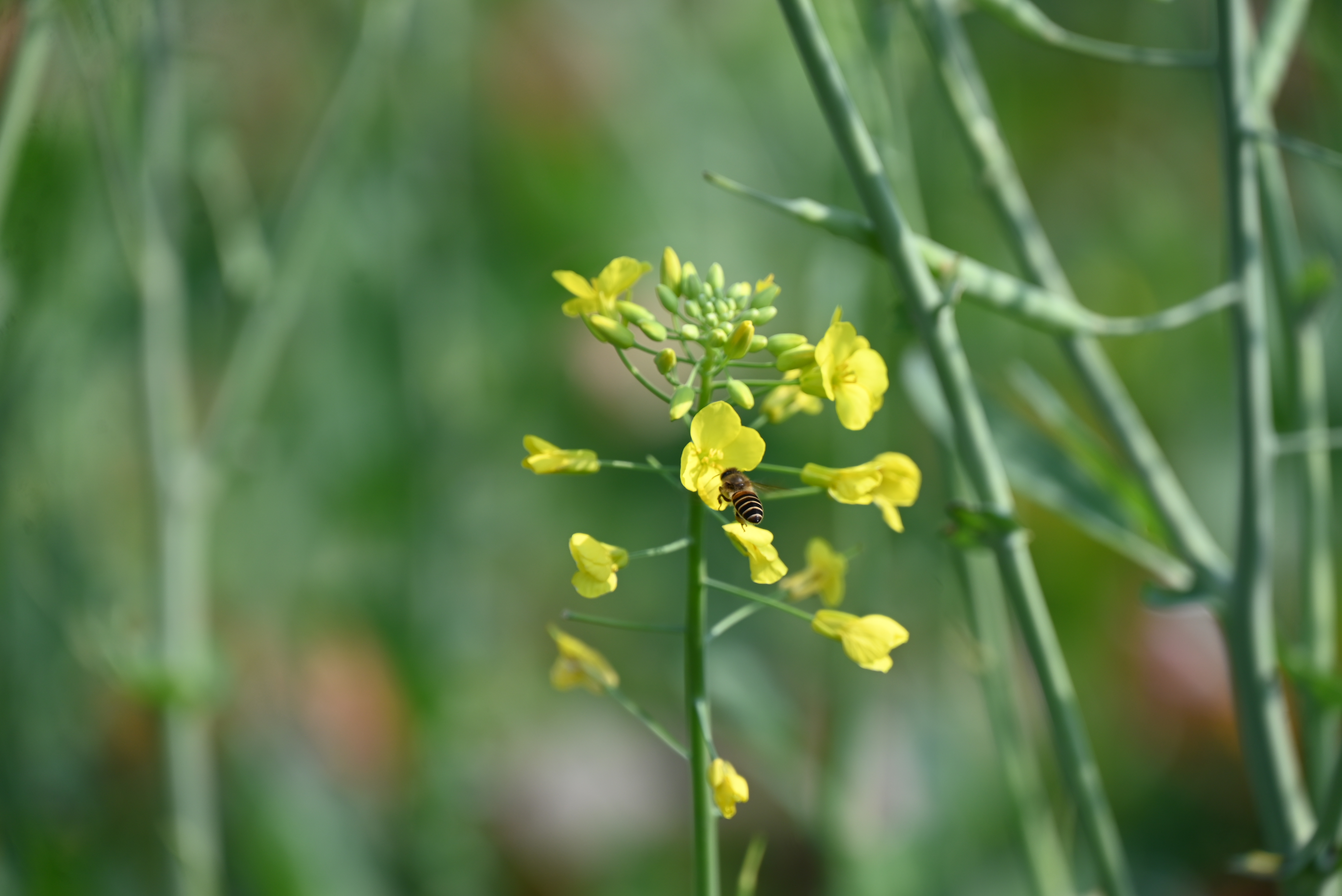 油菜花吸引蜜蜂采蜜。李红波 摄