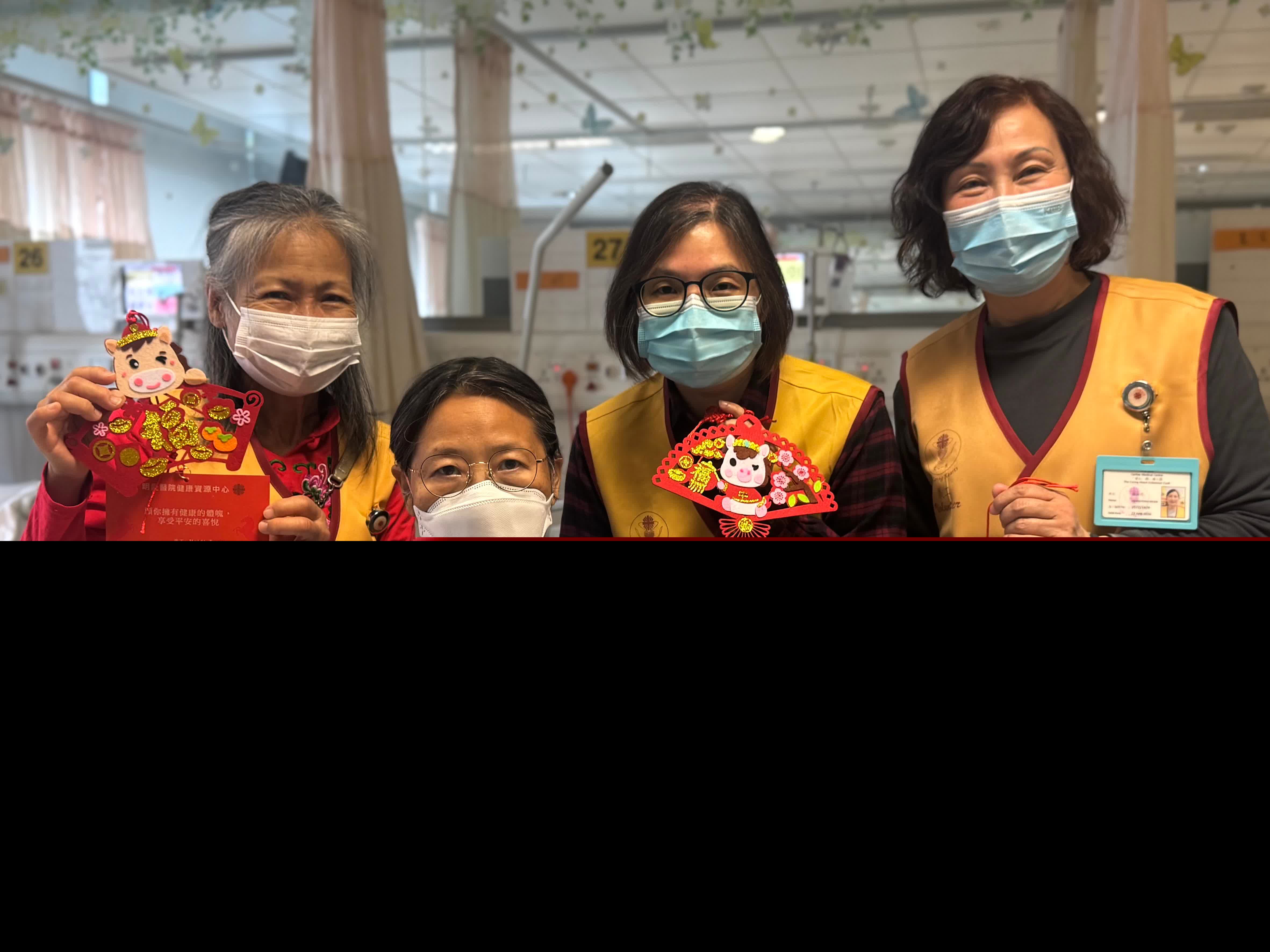 明愛醫院健康資源中心的義工團隊,早前為病人特製印有小馬圖案的新年掛飾,並帶同掛飾到病房探訪住院病人,送上寫滿節日祝福的心意卡,讓病人感受馬年的喜慶。