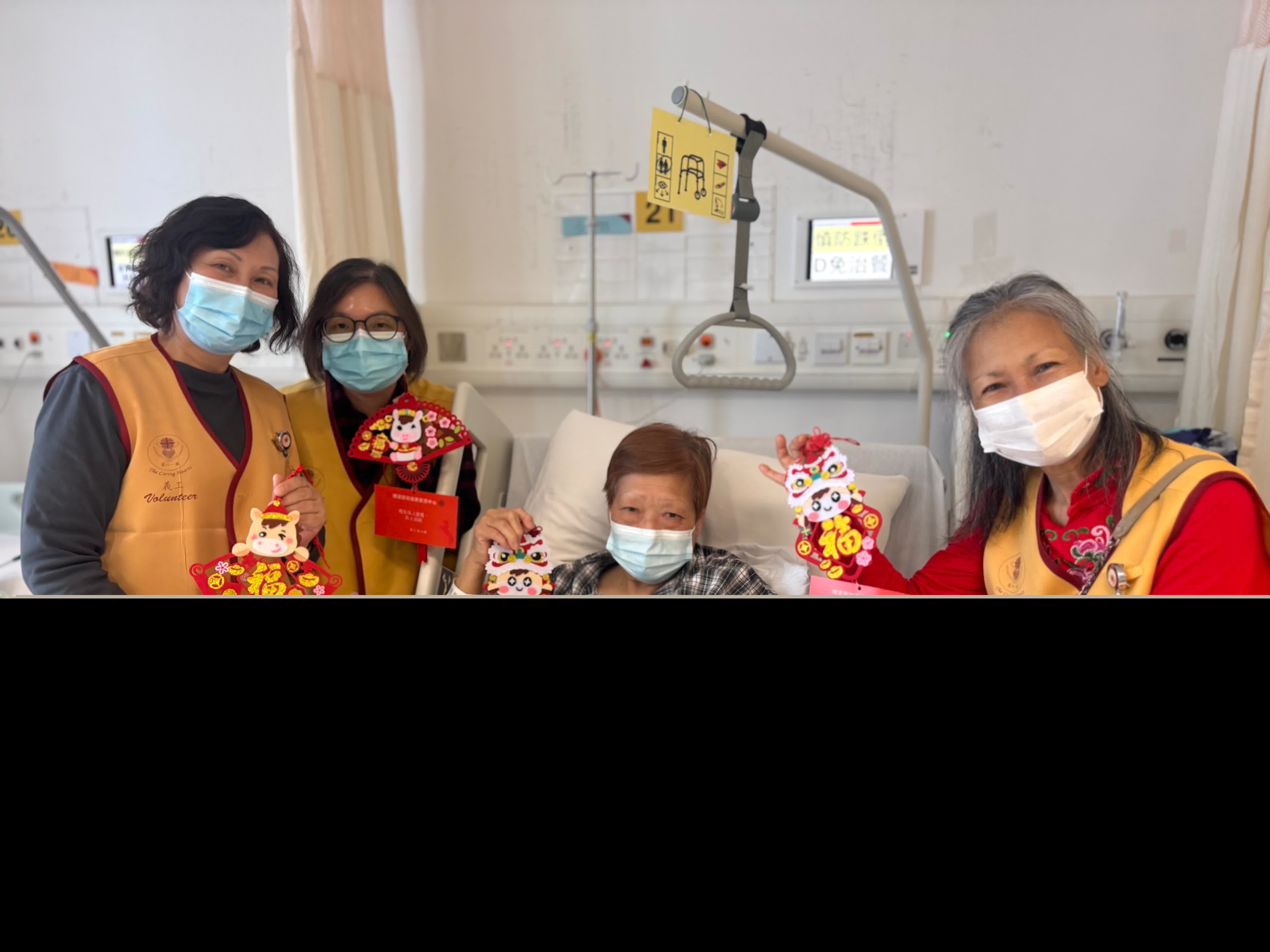 北區醫院的義工們亦精心設計和佈置「紅噹噹」的新春禮物車,聯同醫院管理團隊穿梭病房,為病友送上愛心小禮物與祝福。留院病友藉此機會互相問候送暖,一同享受佳節歡樂。