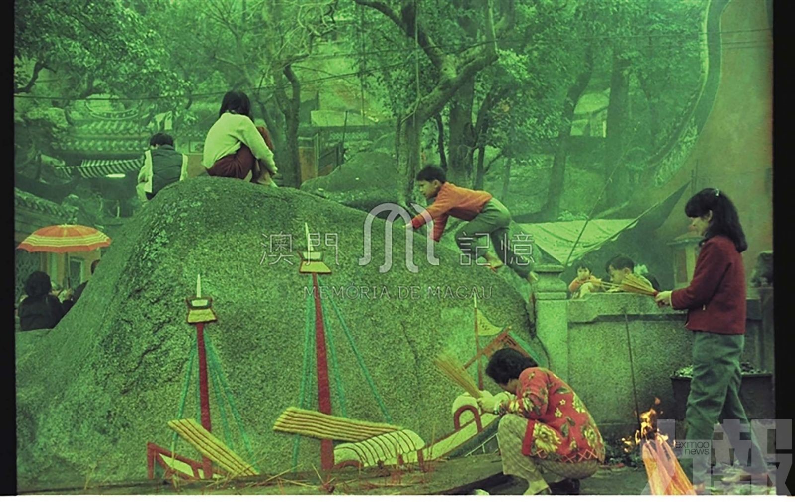 媽閣廟向來是農曆新年香火最旺之地,圖為1983年春節,澳門民眾到媽閣廟拜神祈福。 (陳永漢攝,摘自 「澳門記憶」文史網)