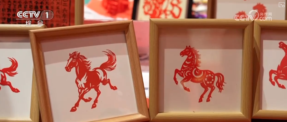 辽宁省满族伊尔根觉罗剪纸传承人赵玲玲介绍,他们是辽宁省的省级非遗,是满族伊尔根觉罗剪纸。2026年是马年,这幅作品就是今年最新创作的,是根据最早出土的剪纸纹样对马,又做了一些修改。八匹马寓意着四面八方奔腾,奔向更美好的生活。