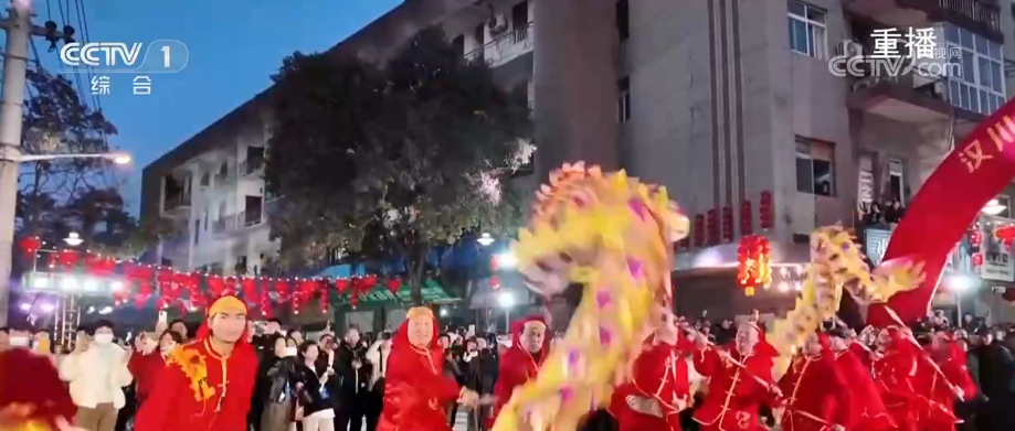 在湖北省汉川市,13条承载着市民记忆的老街迎来了改造焕新后的第一个春节。夜幕降临,舞龙舞狮、划彩船等非遗表演队伍沿街巡游,金龙腾跃翻转,狮头摇曳前行,与市民游客热情互动。汉江两岸灯火璀璨,无人机群腾空而起,烟花绽放夜空与焕新的老街交相辉映,构成一幅光、水、城相融的幸福画卷。百年花市开锣 古今交融添“新意”
