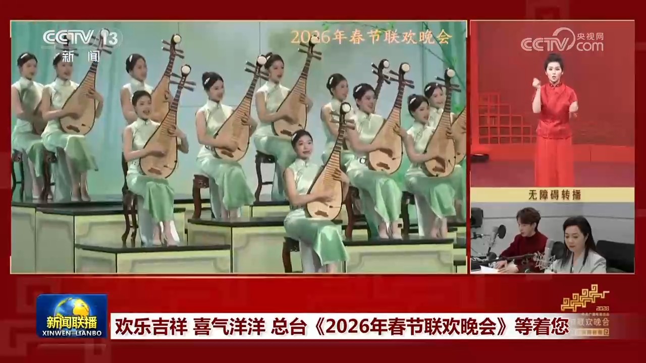 央视网消息(新闻联播):中央广播电视总台《2026年春节联欢晚会》马上如约而至。目前,晚会直播工作一切准备就绪。
