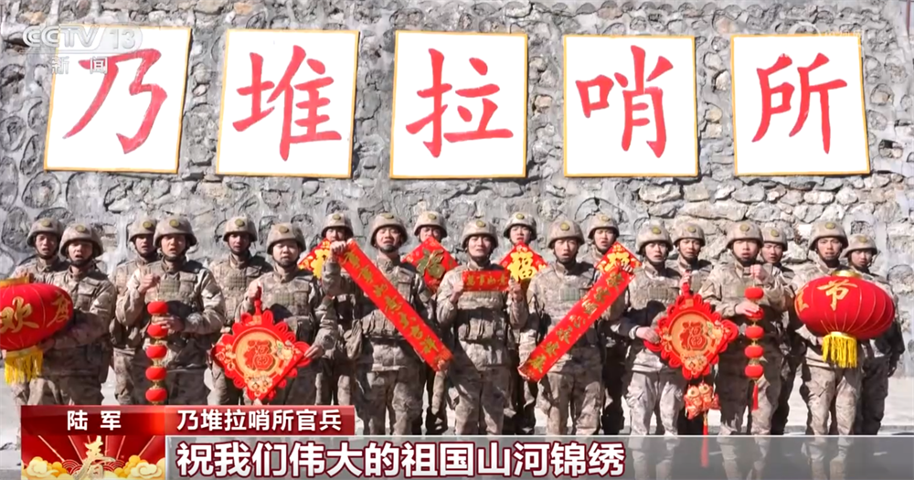 乃堆拉哨所官兵:祝我们伟大的祖国山河锦绣、繁荣昌盛、国泰民安,祝全国人民马年祥瑞、喜乐常宁、身体健康、万事如意。