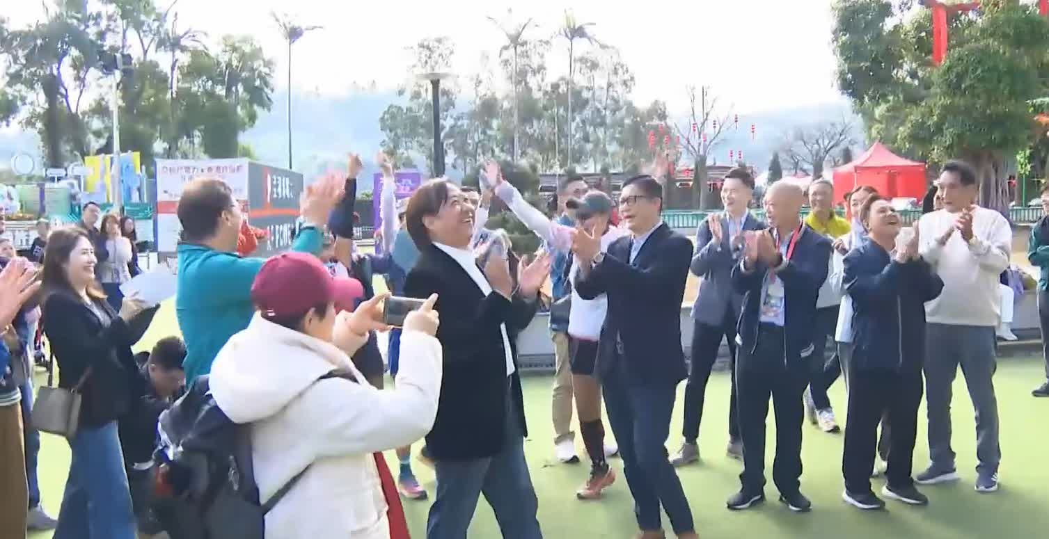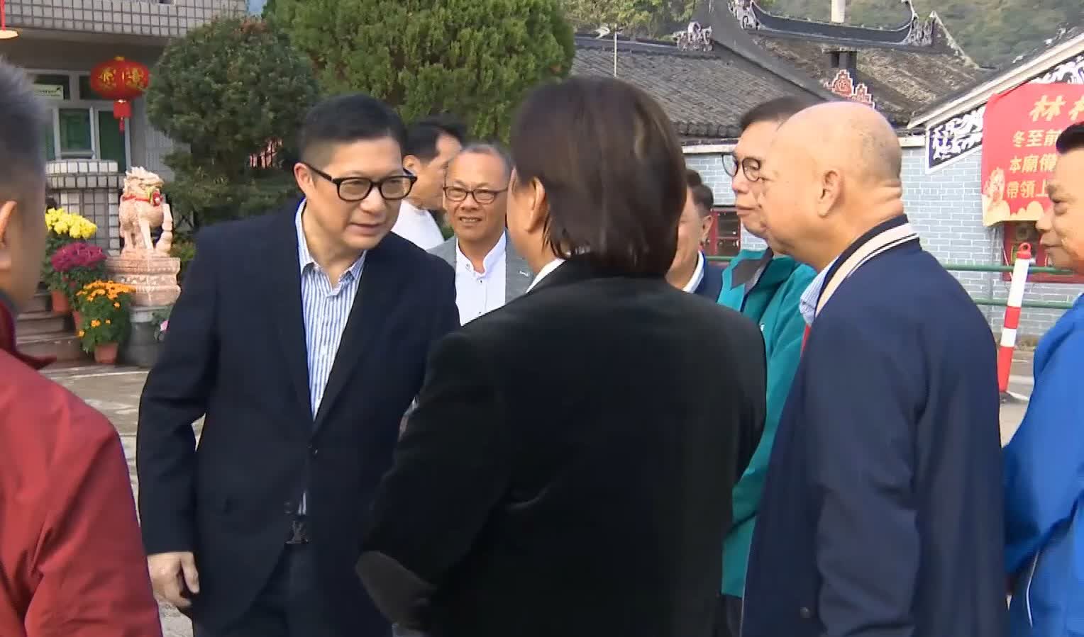 香港文匯報訊(記者 蕭景源)今日(18日)大年初二早上,保安局局長鄧炳強到訪大埔林村,在大埔警區指揮官江永祥等陪同下,與林村許願廣場主席鄭倫光交流,又向紀律部隊及醫療輔助隊人員了解工作情況及送上禮物;其後鄧炳強到許願廣場抛寶牒,他在寶牒寫上「國泰民安」,共拋5次成功將寶牒拋上許願樹。此外,鄧炳強又到市集遊逛,其間花費100元購買咖啡及小食。