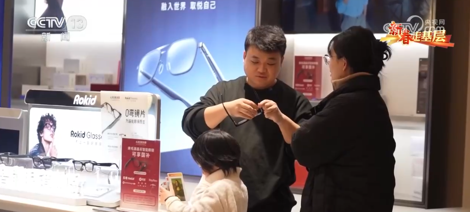 春节临近,杭州这家眼镜店里格外热闹。正在忙着介绍产品的小伙叫许德刚,是一家智能眼镜企业的研发工程师。不过,今天他还有另外一个身份——当值店长。为了更好了解消费者的需求,像他这样原本只需要埋头搞研发的工程师,2026年也开始要到线下门店当导购。2026年,智能眼镜被纳入到“国补”范围,可以享受销售价格15%的补贴,最高不超过500元。费先生是一名大学教授,在体验了智能眼镜的功能后很心动,当场扫码付款买了一副。