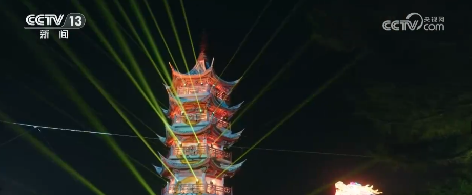 夜幕降临,古镇则化身为流光溢彩的梦幻长卷,一组组主题花灯营造出沉浸式的光影幻境,3D塔身投影与高空特技相得益彰,轮番上演的实景灯光秀,以震撼的视听语言讲述着光影故事。此外,非遗巡游、古风演艺等特色活动同步登场,市民游客在沉浸式互动中感受浓浓年味。敦煌飞天 岭南醒狮 水下演绎别样国潮