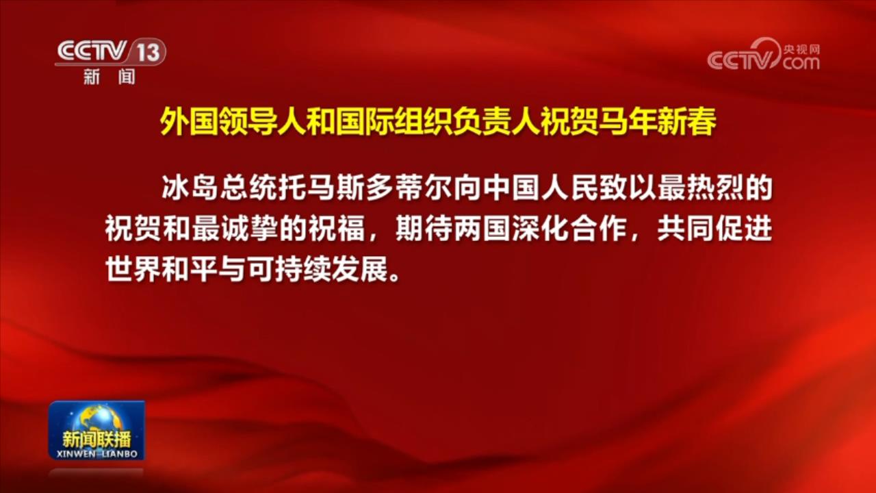 央视网消息(新闻联播):近日,许多国家领导人和国际组织负责人致电或致函中共中央总书记、国家主席习近平,祝贺中国人民喜迎马年新春。