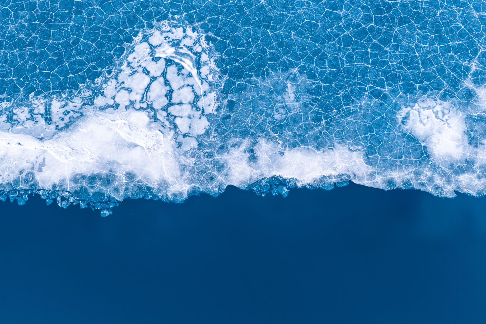 近日,新疆喀什,白沙湖蓝冰初融,冰水各半,蓝天白云映衬下美不胜收。湖面蓝冰和湛蓝的湖水是初春特有的风光。