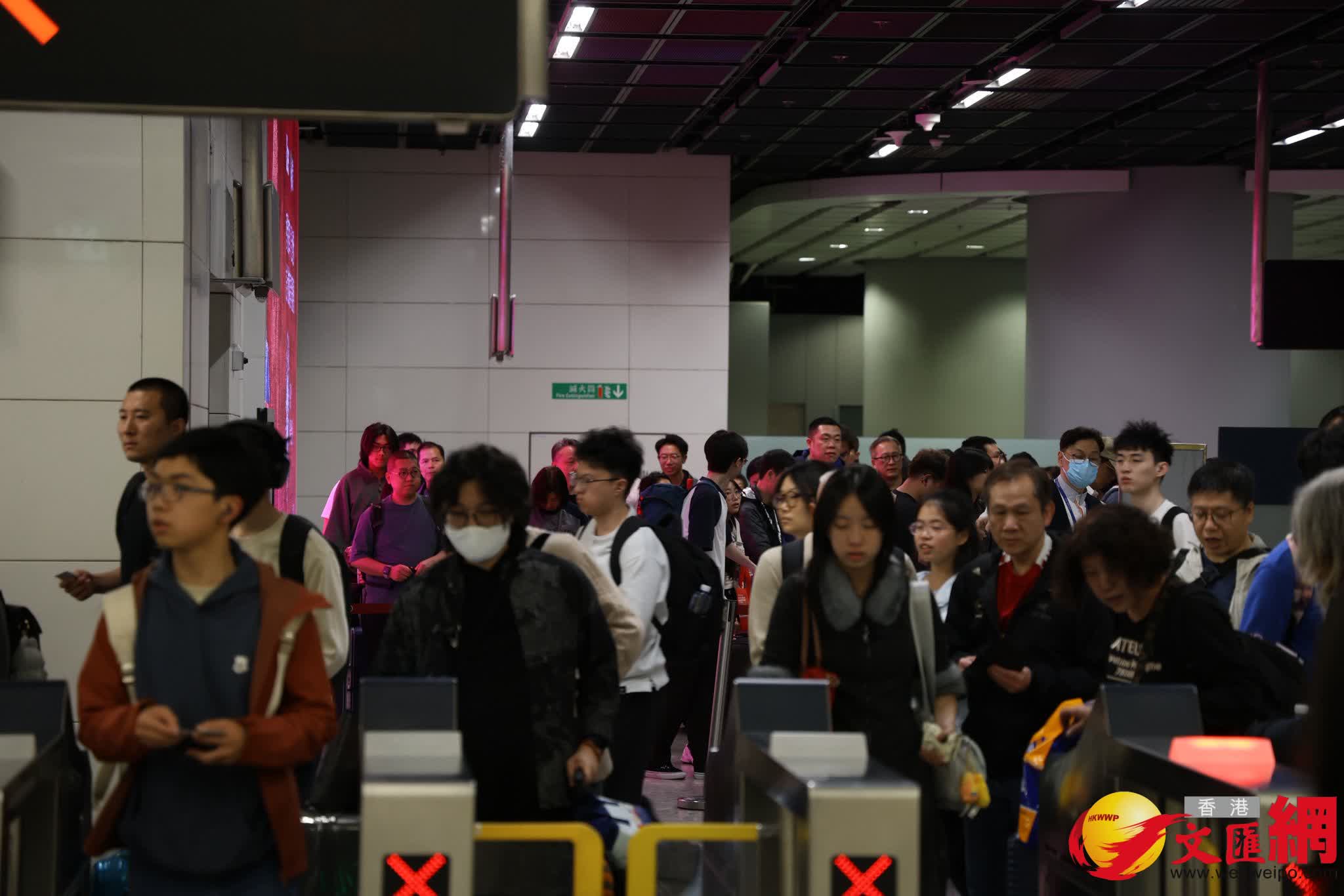 香港文匯報記者晚上到訪高鐵西九龍高鐵站,可見人潮湧湧,不少市民拖著大小行李箱返港,但秩序井然,未見混亂。一家人到內地過新年剛從廣州返港的曾先生表示,今日過關的人不算多,非常順暢,僅用了15分鐘便可完成過關。另一名在港工作的內地人王先生亦表示,過關僅用了兩分鐘,禁區內不是太多人,形容過關很順利。