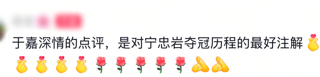 “每一次孤独早课的无人问津,宁忠岩自己那些挥汗如雨的辛苦付出,那些人间清醒的自律和苛刻,都化成了今天一马当先的闪耀,这都是宁忠岩迎接这个新世界新征程最好的模样!”