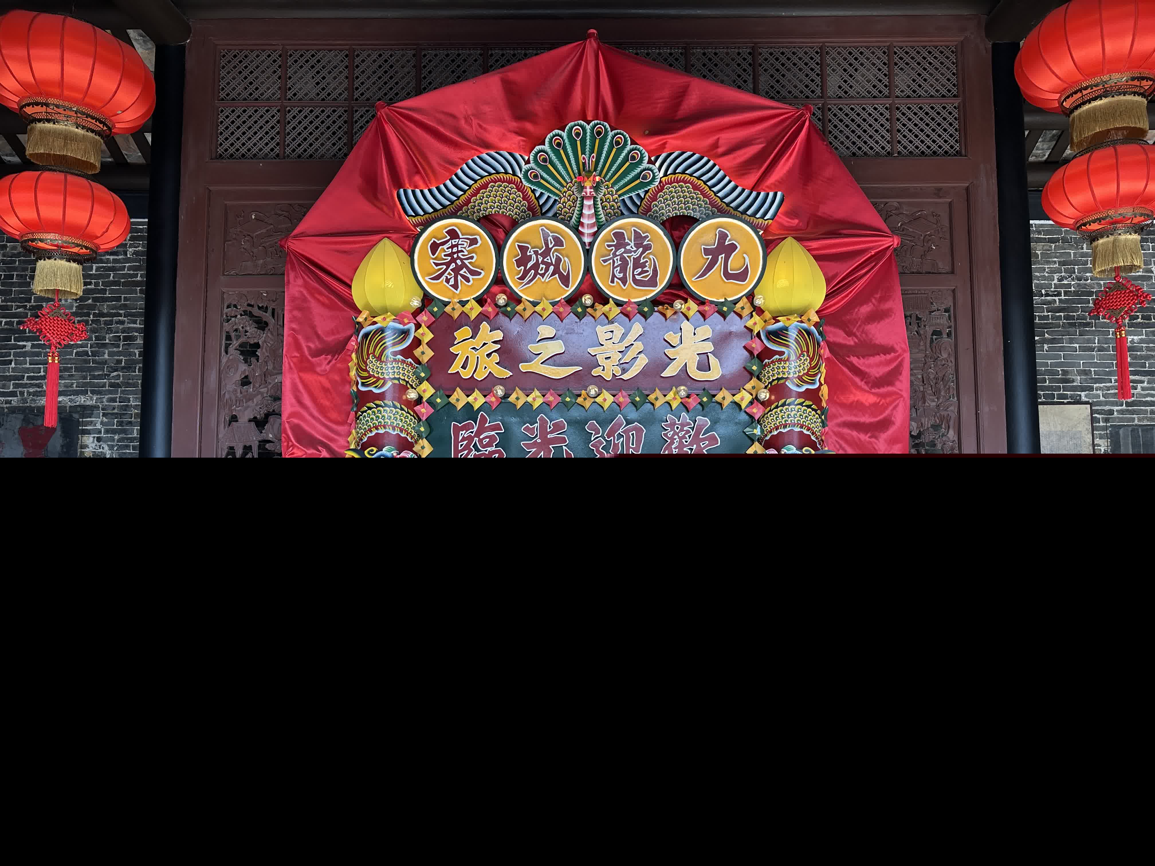 色彩絢爛的傳統花牌,是節慶與典禮中常見的祝賀裝飾。每逢盂蘭勝會,城寨便搭起神棚、戲台,居民於街邊焚燒街衣,祈願平安。