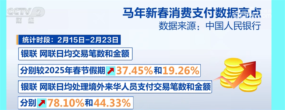 2026年马年春节,多项支付交易数据呈现了多元化的消费热潮,展现出消费旺、出游火、年味足的新年图景,来看报道。