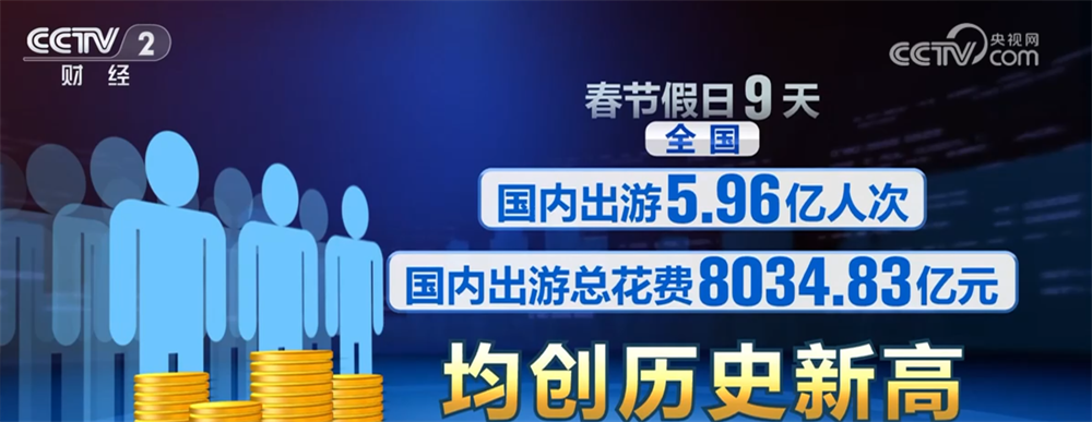 央视网消息:据文化和旅游部数据中心测算,春节假日9天,全国国内出游5.96亿人次,国内出游总花费8034.83亿元,假日游客人数和花费均创历史新高,全国文化和旅游市场平稳有序。