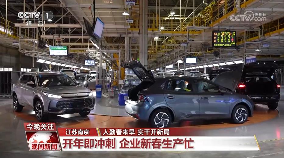 总台记者 毛俊:我现在所在的位置是南京市江北新区的一家大型汽车生产企业,在这间4万平米的厂房中,加工的产线从地面延伸到头顶,每天可以生产1000辆汽车左右。眼前这款就是企业几个月前刚上市的新款车型,订单已经排到了今年下半年,由于市场供不应求,所以等不到大年初八,其实从初五开始,企业就已经全员到岗加班加点。目前仅这一个车间,就有两个班组,共1200名工人,是去年春节同期的2.5倍。