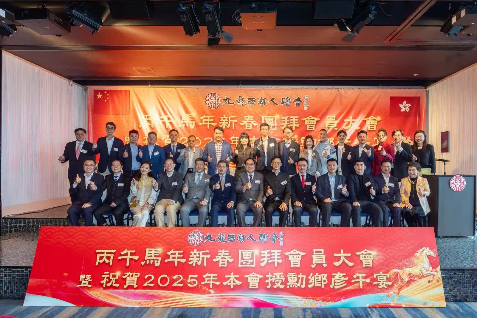 中央政府駐港聯絡辦九龍工作部副部長郭長勇,入境事務處處長郭俊峯,立法會議員梁文廣、楊永杰,民政事務總署副署長易宏正,九龍城民政事務專員蔣志豪、油尖旺民政事務專員李家維、深水埗民政事務專員王浩宇,九龍城警區副指揮官梁國榮高級警司,油尖警區指揮官沈海光署理總警司,深水埗警區副指揮官陳志昌署理高級警司等嘉賓,以及九龍西潮人聯會永遠榮譽會長陳統金、馬介欽,創會副會長羅少雄、陳生好,常務副會長劉偉光、連洲杰、羅黃慧玲、黃意生、陳業霖,副會長吳建渤、陳佩謙、黃廸華、何桂浩、林曉玲、王曉霞出席,同賀馬年新禧。