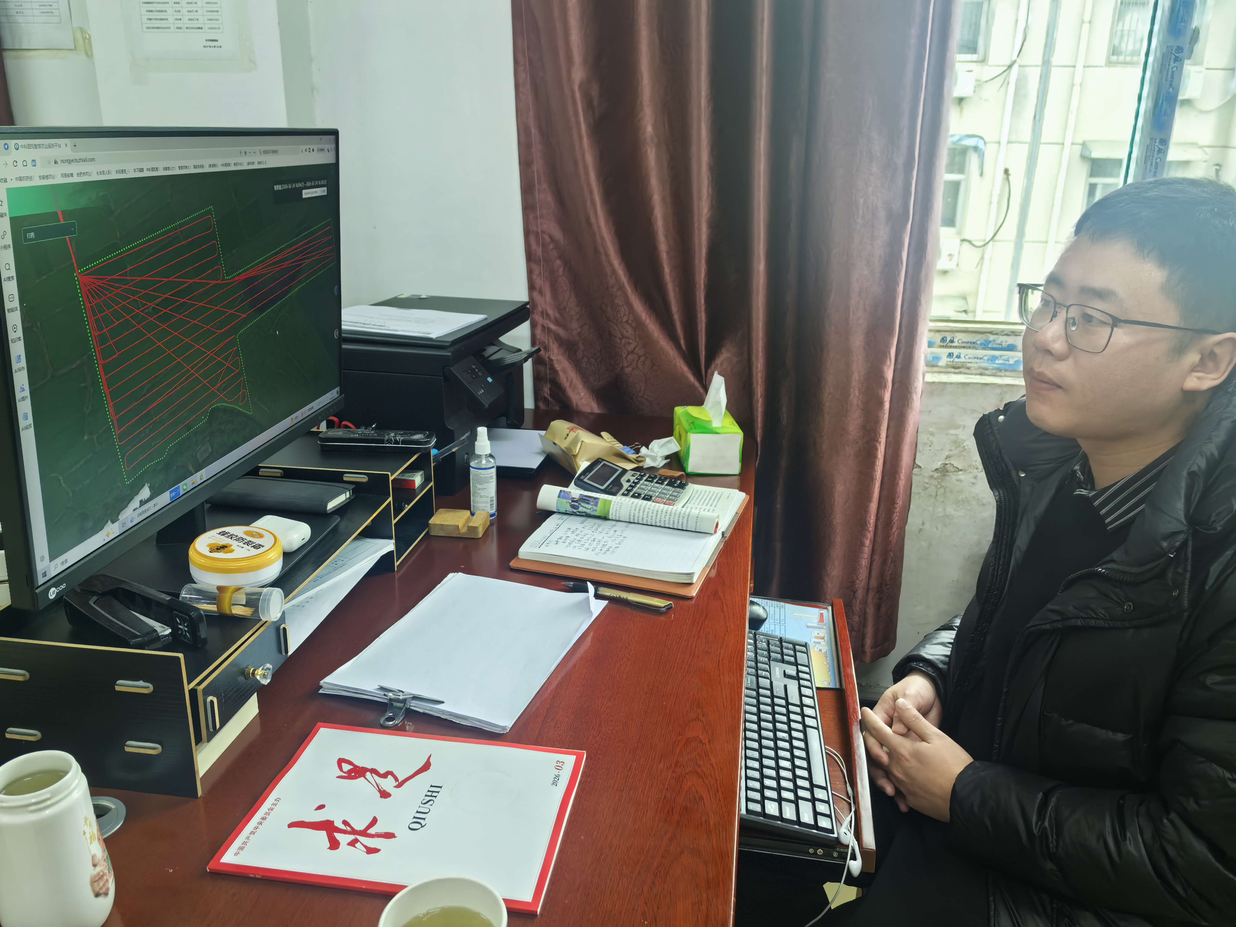 工作人员正用监管平台监测长丰县无人机施肥情况。