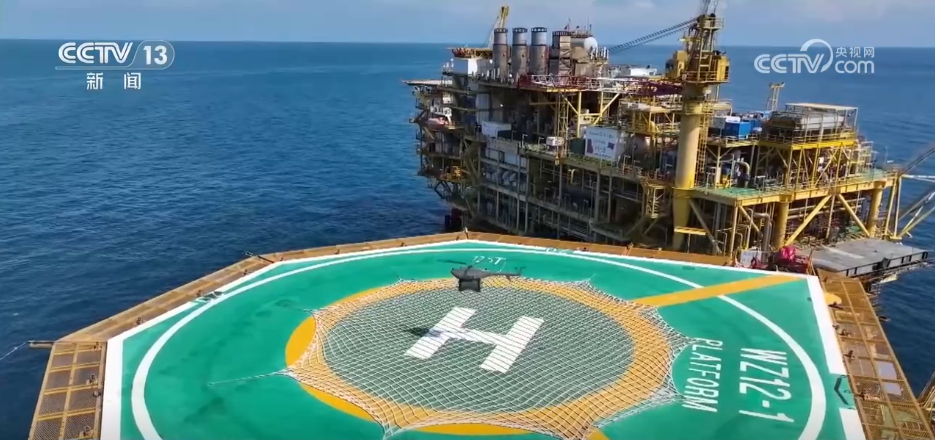 记者来到北部湾海域,距离陆地约50海里的涠洲12-1油田中心平台,大家看到的这台搭载高清摄像头和红外热成像仪的工业级无人机,能在7级风以下实现全天候智能巡检,1小时就能完成过去拖轮一整天的巡检工作量。