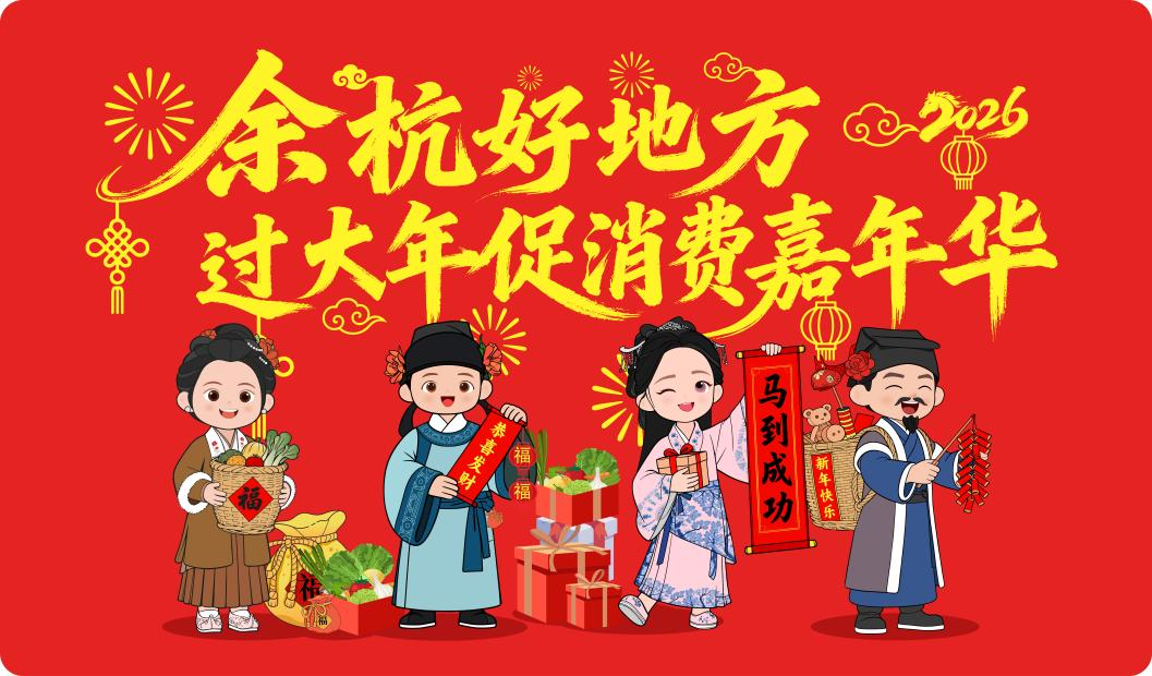 当马年的蹄声敲响新年的钟声,余杭大地便以一种别开生面的方式,开启了一场持续近2个月的“年味盛宴”。从2025年岁末至2026年元宵,浙江杭州历时近两个月的“和美‘余’乡 启‘杭’味来——2026年余杭好地方过大年促消费嘉年华”在全区范围内热烈展开。这场由余杭区农业农村局、区文广旅体局主办的新春盛会,以“余氏一家”为形象IP,串联起线上线下的消费场景、文化体验与乡村共富故事,成为马年春节里一道流动的苕溪新风景。