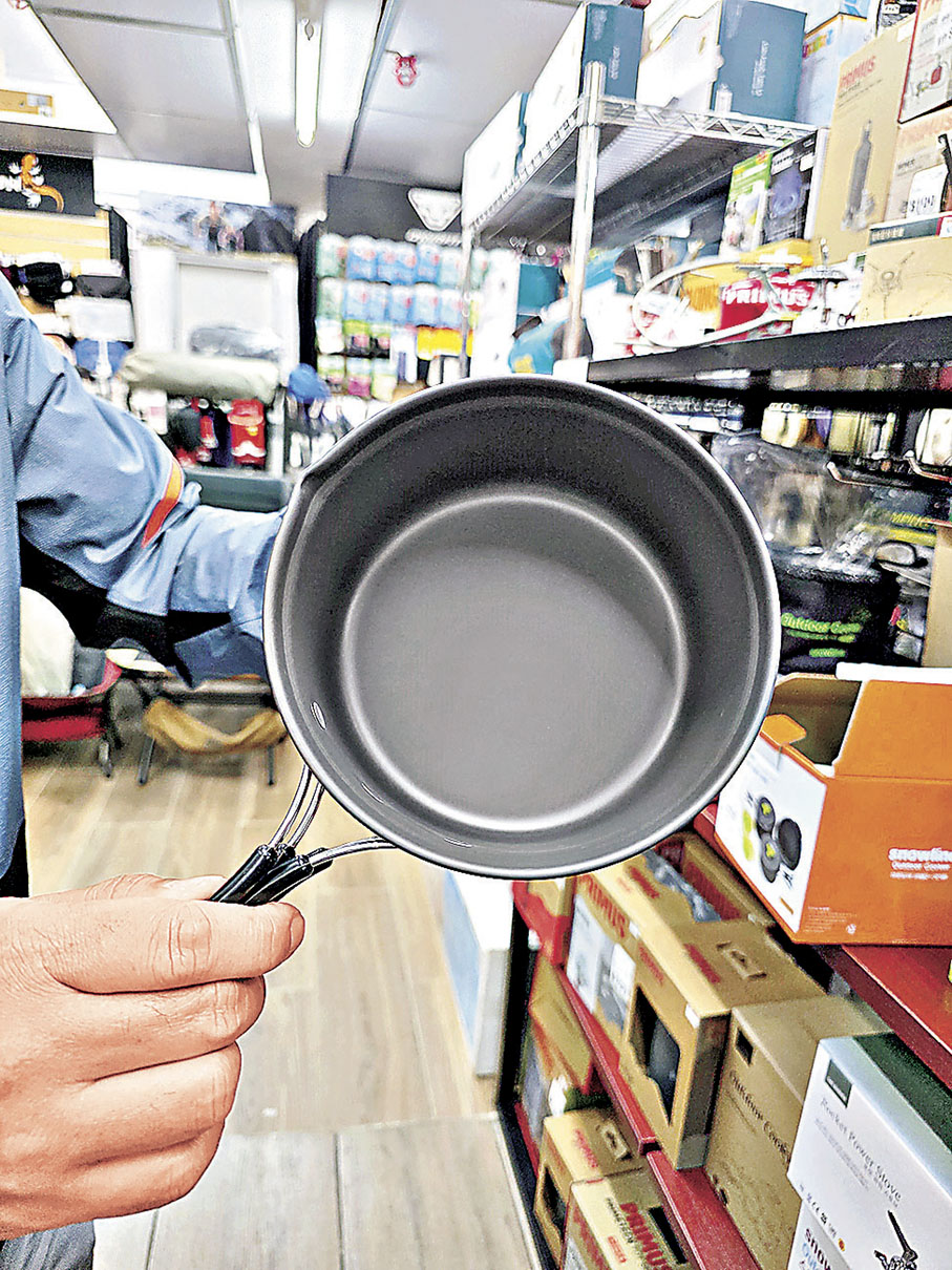 Sunny又指炊具常見有價格較高的鈦金屬、鋁金屬及不銹鋼材質,前兩者既輕量亦傳熱快,不銹鋼則勝在便宜耐用,當中價錢相宜又堅硬耐用的鋁製炊具是主流。Sunny直言,平常一個1公升的鍋子,已經可以解決大部分煮食問題:「野營炊具不適合長時間受熱,煎炸、炆燉等烹調方式都不太適合,有加水的煮法會比較好,像早餐煮麵可以將配料一同放到鍋中,晚餐煮飯也可以煮好飯放在碟子或摺疊碗,再用鍋子炒菜就完成,更可以順便煮湯。想更有儀式感一點,也可以再加一個杯子泡咖啡或茶,慢慢享受。」