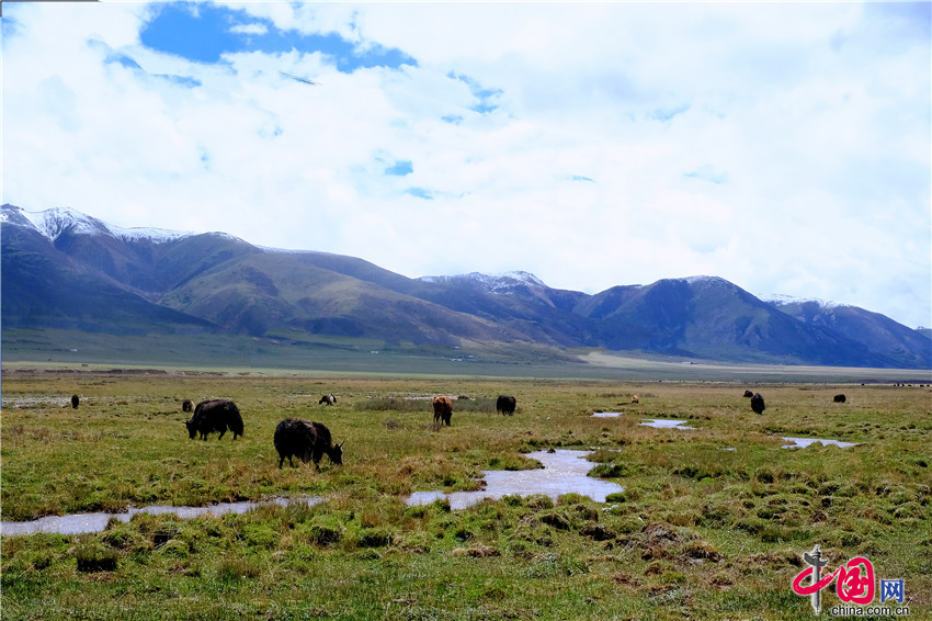 盛夏,雪山、牦牛、青草,和谐相依的玉树巴塘草原