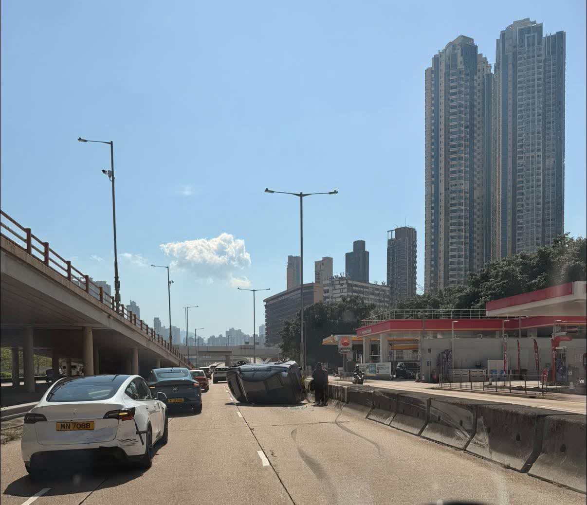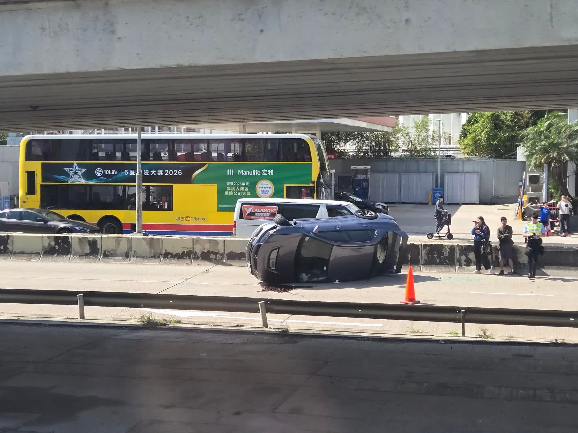 九龍城私家車撞壆翻側 橫亘快線交通受阻