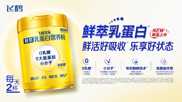 针对国人体质特点及中老年群体常见的乳糖吸收痛点,产品还应用10重膜滤完全分离乳糖技术,实现0乳糖,对乳糖不耐人群友好,进一步解决了国人补蛋白难的痛点。同时,飞鹤还将专利益生菌BLa36融入产品配方,与鲜萃乳蛋白核心技术形成科学互补,进一步强化营养吸收效率,为全家营养提供更全面的解决方案。