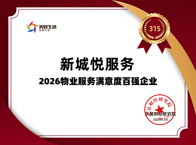 为全面展现中国物业服务行业服务水平与业主口碑成果,推动行业高质量发展,2026物业服务满意度百强企业正式揭晓。新城悦服务凭借其在服务品质上的长期坚守与数字化应用的稳步落地,荣膺“2026物业服务满意度百强企业”。