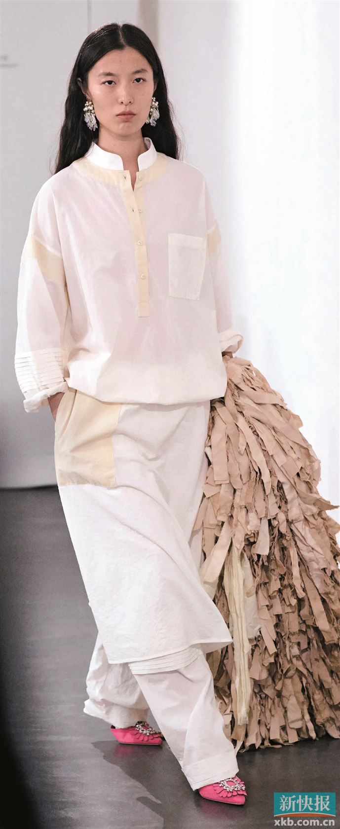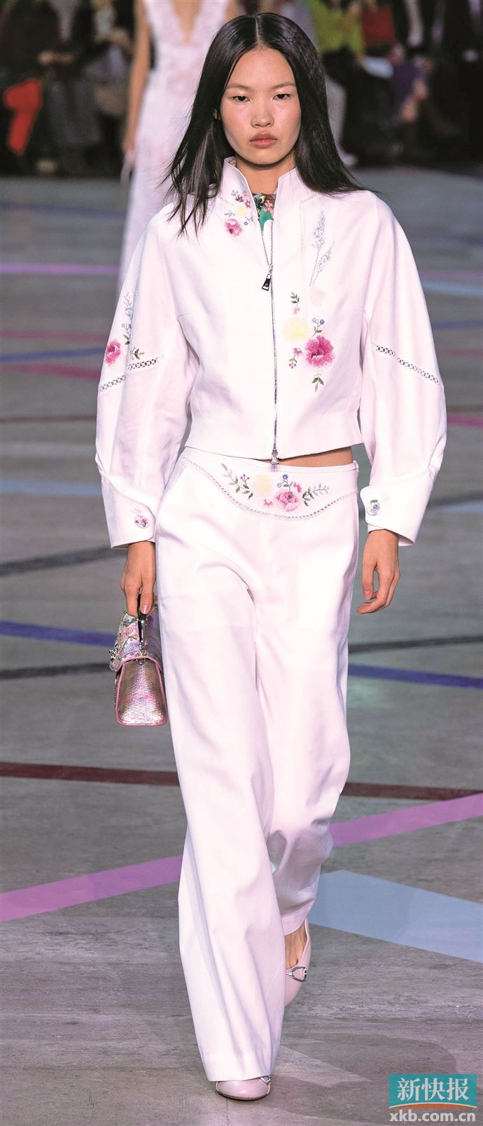 选一件带简约刺绣元素的白色立领衬衫,搭阔腿裤就时髦得毫不费力,淡雅绣纹成为简约版型中的点睛之笔。