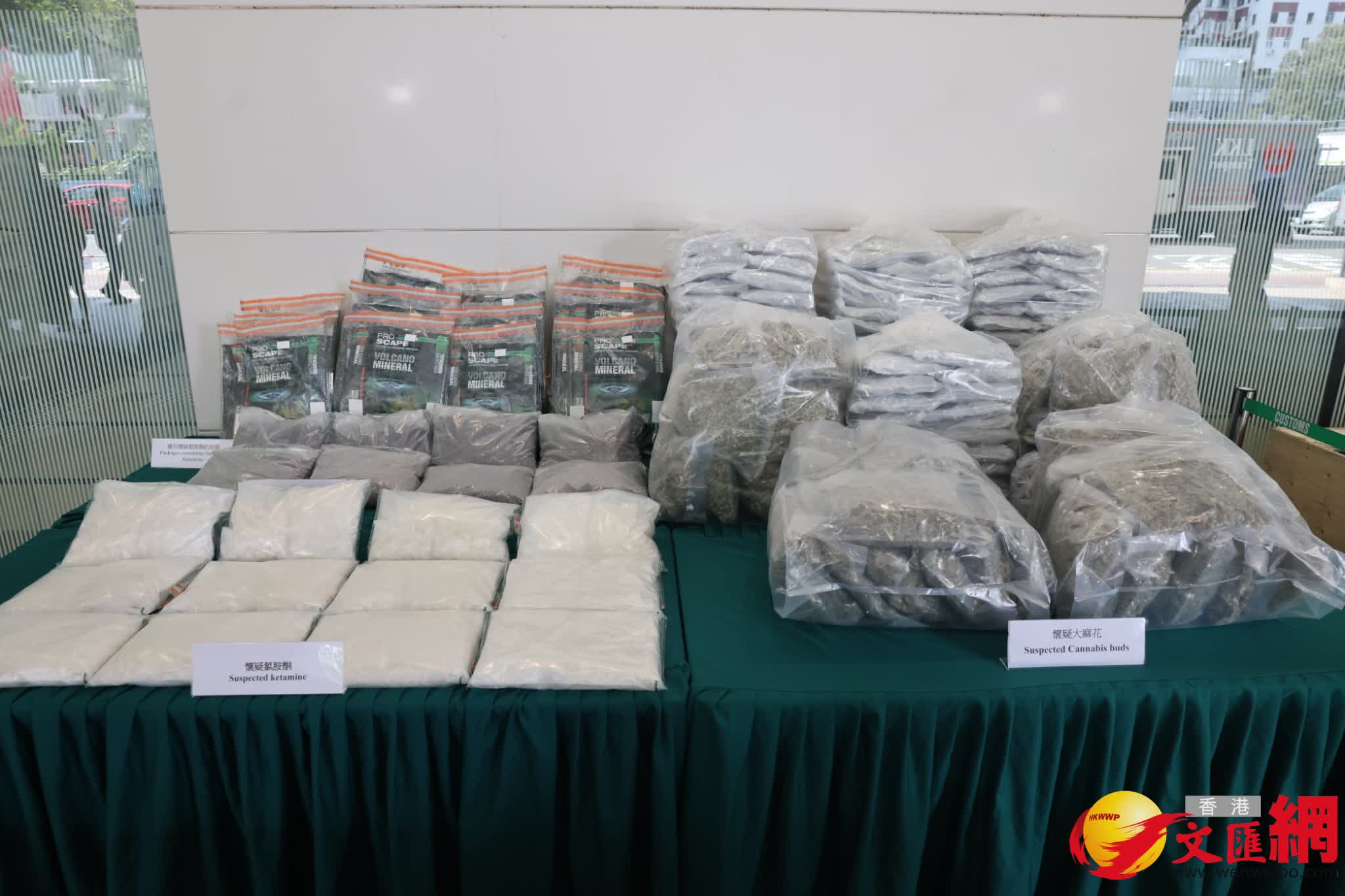 第二宗毒品案,香港海關聯同內地緝私部門開展聯合執法行動下,於3月10日根據情報分析在陸路邊境口岸查驗一票由法國經內地轉運至香港的速遞物品;該批物品共12個紙箱,重量300公斤,報稱為水族過濾用品。關員經查驗,紙箱內載有24包適用於魚缸水質過濾的火山礦物,但經進一步檢查在火山礦物的包裝內發現藏有36公斤懷疑氯胺酮,市值約1450萬港元。