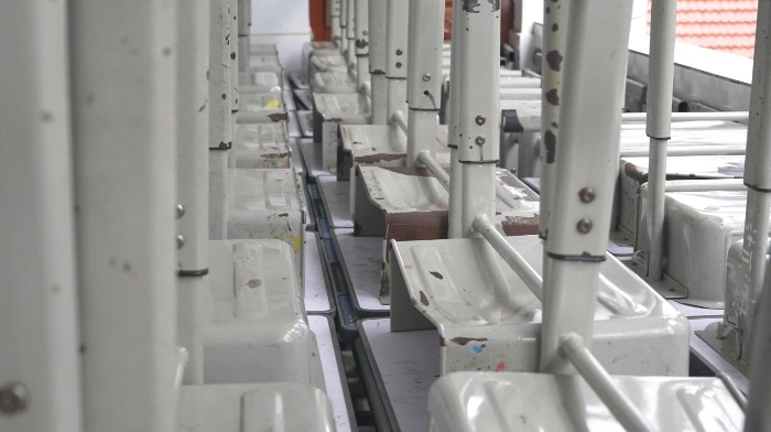 学校的旧课桌椅已经出现凹陷生锈等多处损坏。