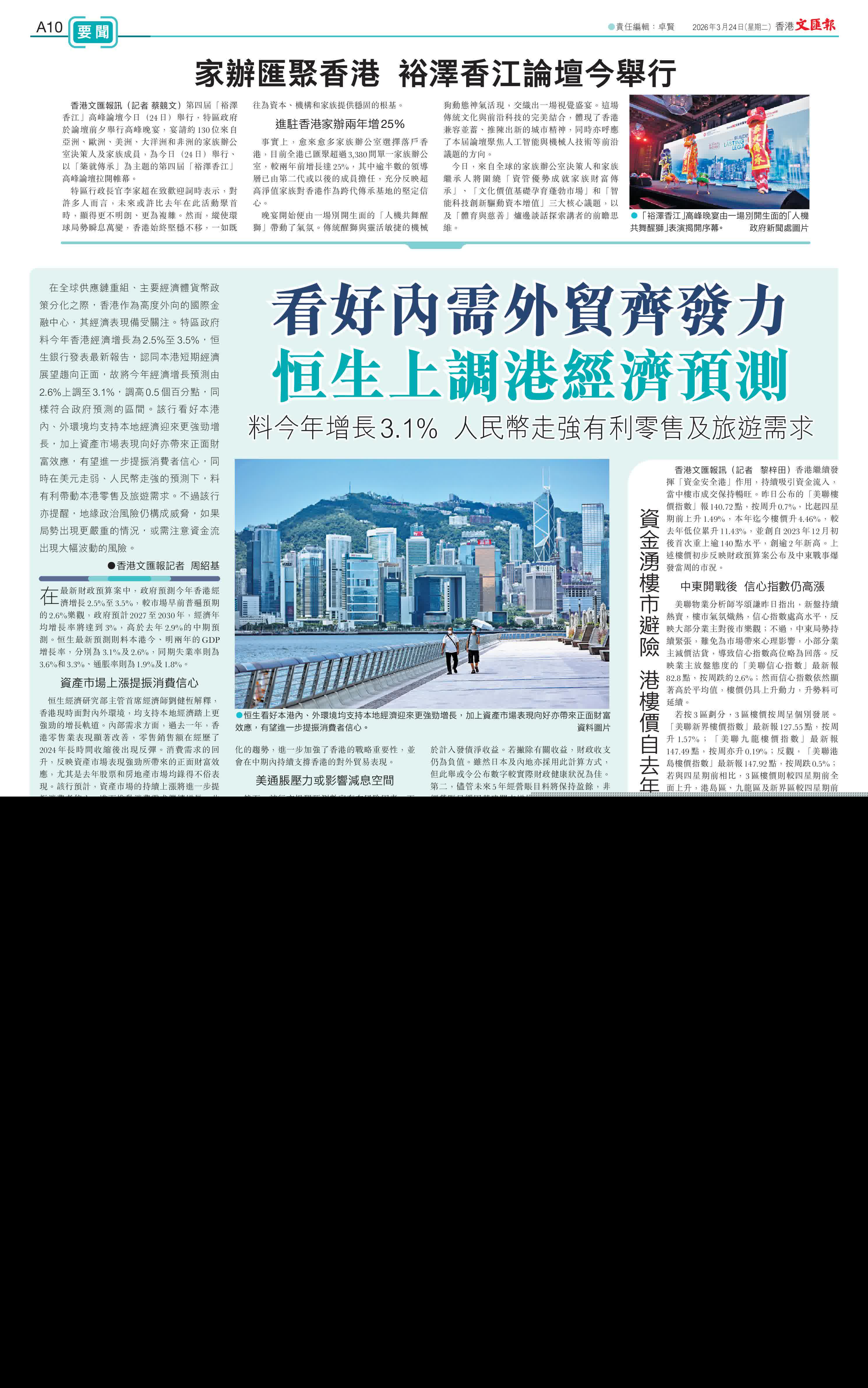 事實上,愈來愈多家族辦公室選擇落戶香港,目前全港已匯聚超過3,380間單一家族辦公室,較兩年前增長達25%,其中逾半數的領導層已由第二代或以後的成員擔任,充分反映超高淨值家族對香港作為跨代傳承基地的堅定信心。