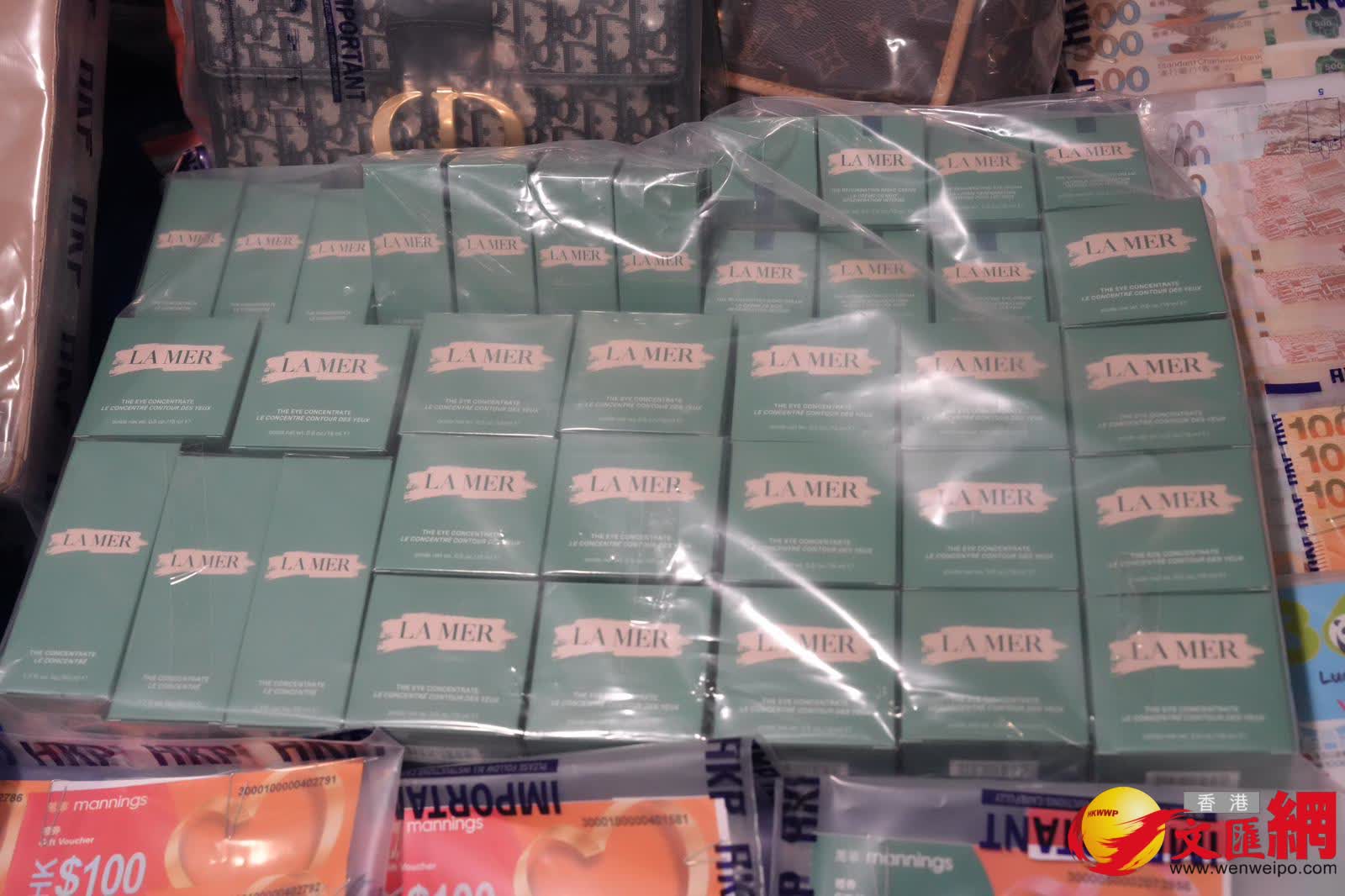 警方經深入調查,整合同分析大量閉路電視片段,包括警隊「銳眼計劃」安裝在罪案黑點的閉路電視錄像,成功鎖定該詐騙集團的成員後,昨日搜查集團的工廈單位據點,拘捕4名涉案男女及檢獲大量證物,包括逾9.6萬元現金、多部手提電話、電腦設備和45張電話儲值卡。另亦檢獲大批疑以詐騙得來的贓物,包括名貴手錶、護膚品、酒、保健食品、演唱會門票和大量遊戲卡等。