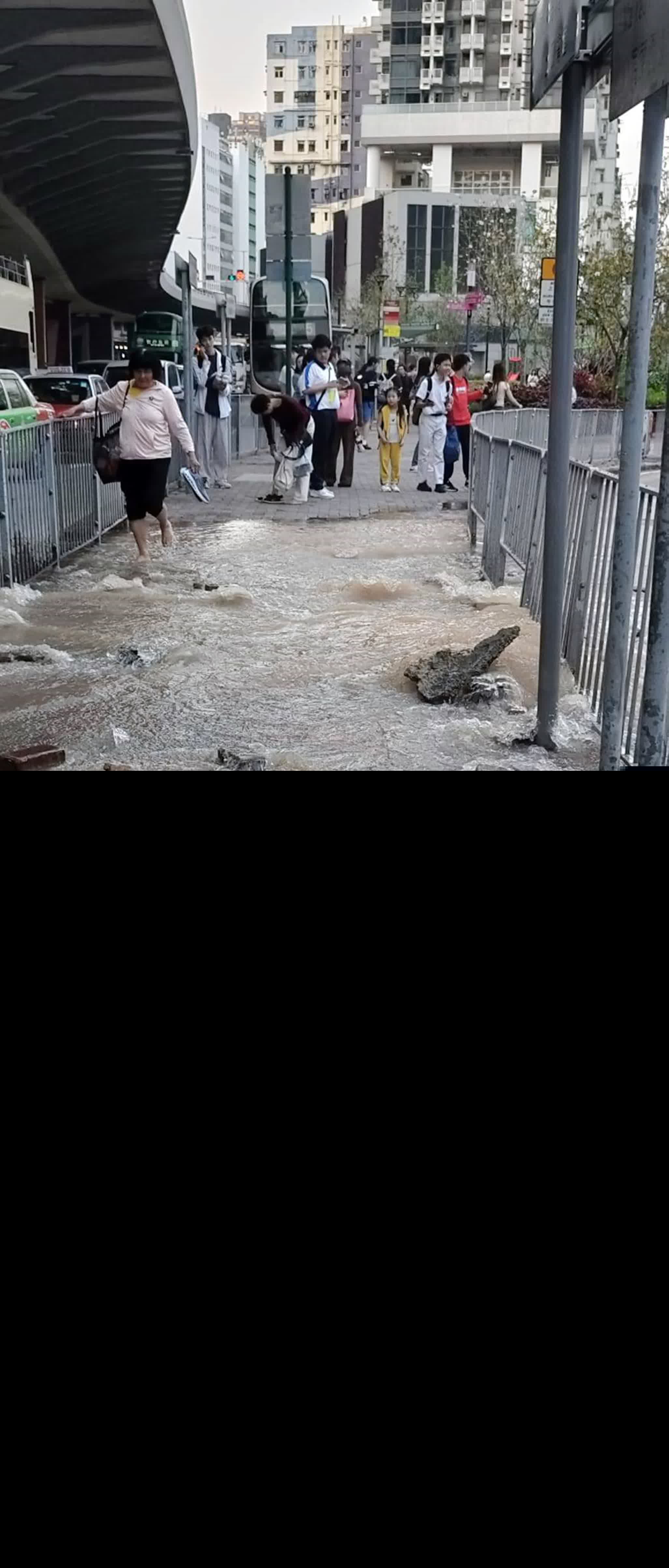 香港文匯報訊(記者 蕭景源)今日(25日)傍晚近6時,土瓜灣道近浙江街遊樂場巴士站有地底食管爆裂,大量黃泥水湧出沖毀路面,現場一段行人路及馬路頓成澤國,途人及車輛要涉水而行。警員其後接報到場封路及指揮交通,並通知水務署派員關上水閘和搶修,期間有區內關愛隊及議員到場協助途人。