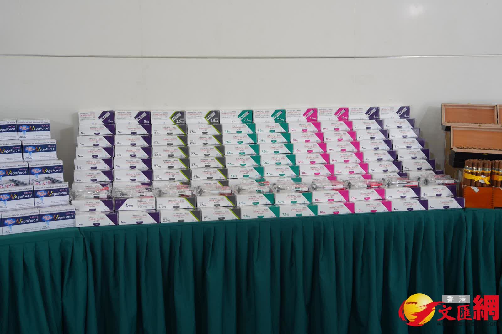 香港文匯報訊(記者 蕭景源)香港海關透過情報分析及風險評估,上周三(3月18日)抽查一艘由香港出發前往澳門的內河船。期間在一個報稱載有充電插頭的40呎貨櫃內,檢獲大批未列艙單的貨物,當中包括藥劑製品、美容針劑、雪茄、手提電話及電子配件等,全部總值約7100萬元。海關警告市民,切勿使用一些來歷不明的藥劑製品及美容針劑,以免危害生命。