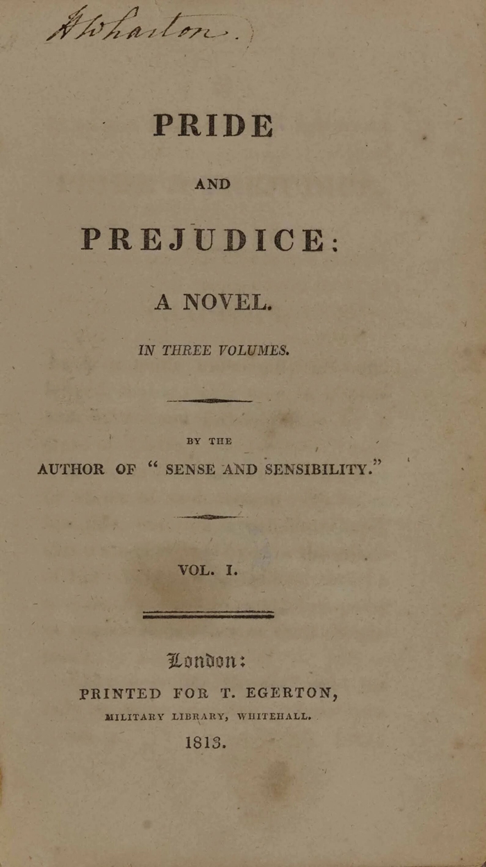 简·奥斯汀《傲慢与偏见》初版第一卷伦敦,1813年杜伦大学图书馆惠允©Durham University Library and Collections