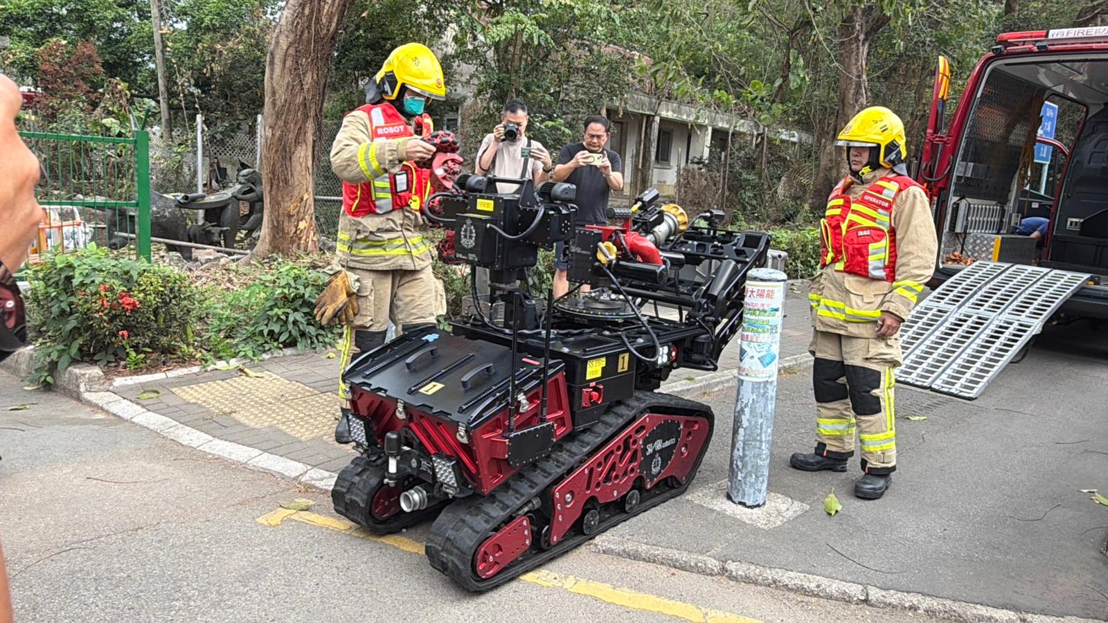 消防處大埔消防局局長張樂恒表示,消防於今日上午11時01分接報後4分鐘到場,火場面積約10米乘20米,內有一個8米乘3米的鐵皮構築物,首先起火的是一部廢鐵壓縮裝置。期間,人員出動兩條喉及兩隊煙帽隊灌救外,亦出動一條喉在外圍戒備,防止火勢蔓延。另亦出動一部滅火機械人和無人機協助滅火救援及火場探測。火警於中午約12時37分大致救熄,但仍需繼續射水降溫,防止死灰復燃。