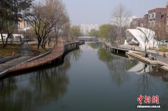 4.2公里的北小河滨水空间焕新亮相,水岸与公园无界融合,以樱花为特色花卉,形成北京首条“樱花河流”。记者 富田 摄