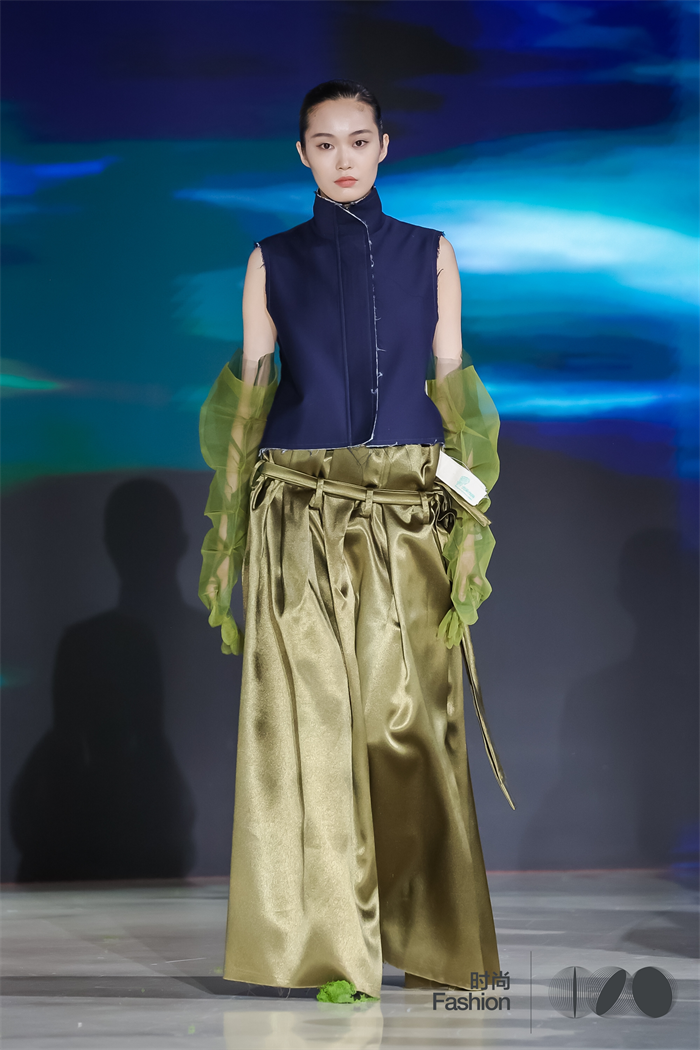 3月28日在中央美术学院美术馆,设计师姜晓曦携“光禾作用(The green symphony of light)”系列,登陆中国国际时装周“新时代青年美术人才培养计划——时尚100”时装作品秀。