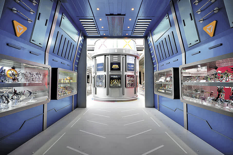 海運大廈露天廣場5米高的「RX782高達」首度以出擊姿態震撼亮相,乘坐Bandai Namco Asia未來飛船強勢登場,動感十足,即使是落雨也不能錯過。而16米長的飛船裝置內展示過百款珍稀高達系列玩具,每一件都值得粉絲慢慢品味。